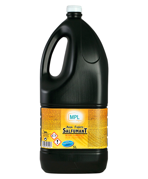 Es un ácido que recibe diferentes nombres según el lugar donde se menciona. Conocido como aguafuerte o salfumán en España o ácido muriático en el Sur de América, e incluso puede comprarse como ácido clórico o marino.