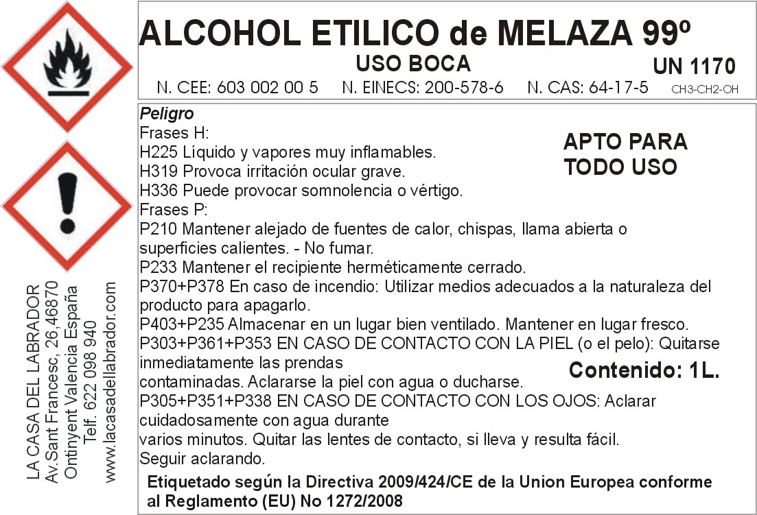 ALCOHOL DE MELAZA: Alcohol neutro de origen agrícola, con una graduación de 99 grados. Sus aplicaciones son aptas para usos de boca, muy utilizados en diferentes industrias como, alimentaria, farmacéutica, sector cosmético, elaboración de bebidas, esencias de uso alimentario, interviniendo en diversos procesos de fabricación.