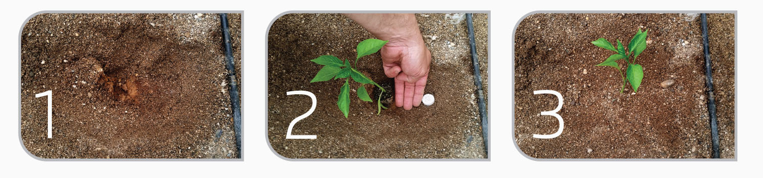 Para trasplantes, colocar las pastillas requeridas debajo de la planta en contacto directo con las raíces, y una vez finalizado el trasplante, regar con abundante agua.