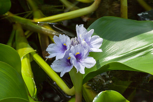 Una planta que crece en una profundidad de entre -10 a -20 cm. Los tallos crecen de la raíz y expanden como brazos bajo la superficie con hojas redondas que salen del agua. Florece en verano con flores azul claro. Muy buena planta para absorber nitratos.