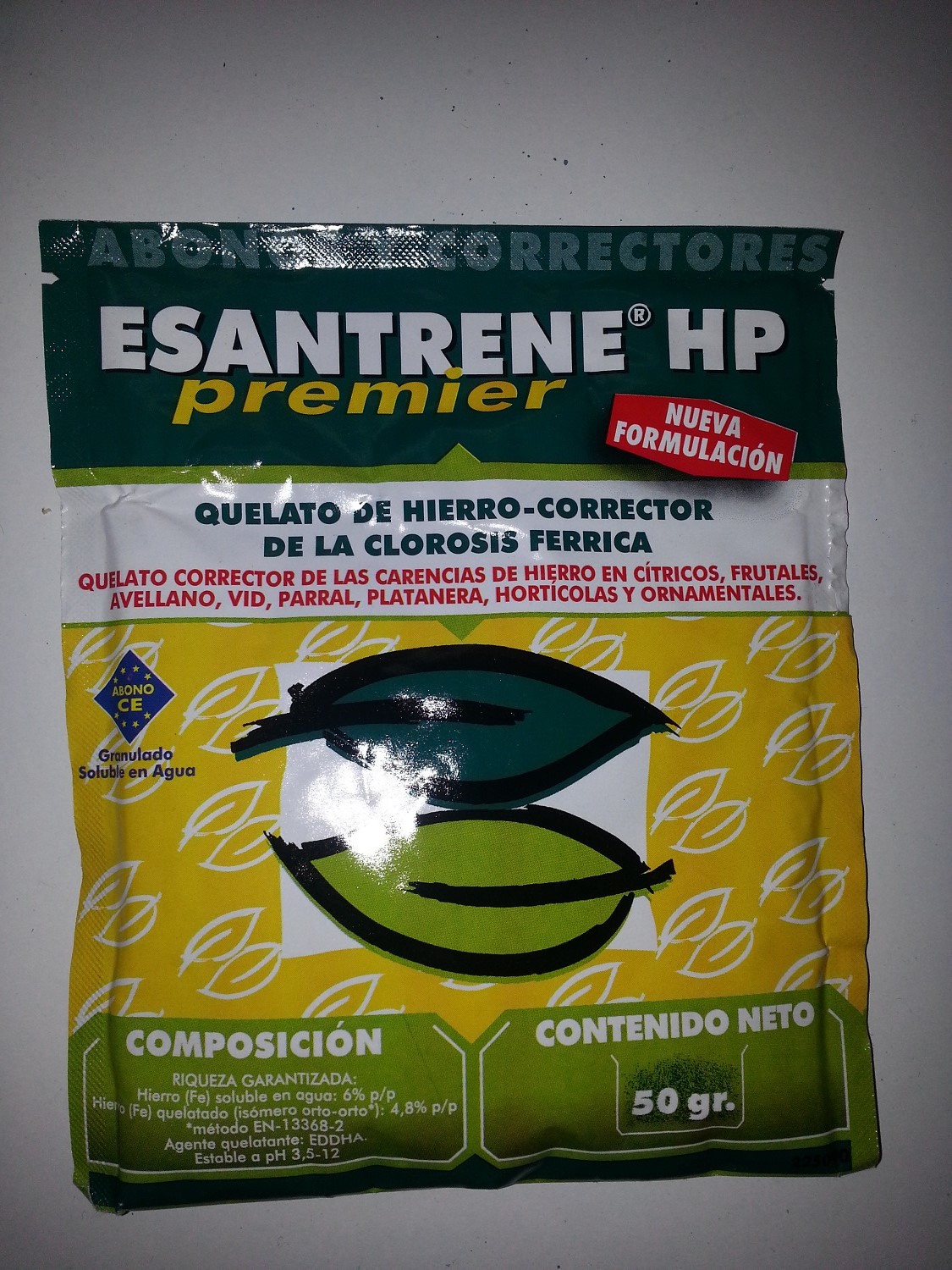 QUELATO DE HIERRO Hierro al 6% quelatado con EDDHA, como isómero ortho ortho al 3,5%, el reverdeciente mas biocompatible con las plantas.