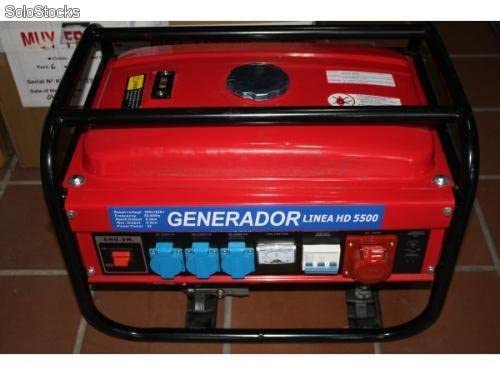 GENERADOR modelo 5500 con arranque con llave, grupo electrógeno compacto con motor ohv tipo honda de 4 tiempos, potencia máxima entre las salidas de 220 y 380 v, 1000w cada salida, total 2800w protección contra cortocircuitos, indicador de voltaje, indicador nivel combustible, interruptor magneto térmico, salida 12v 8. 3a.