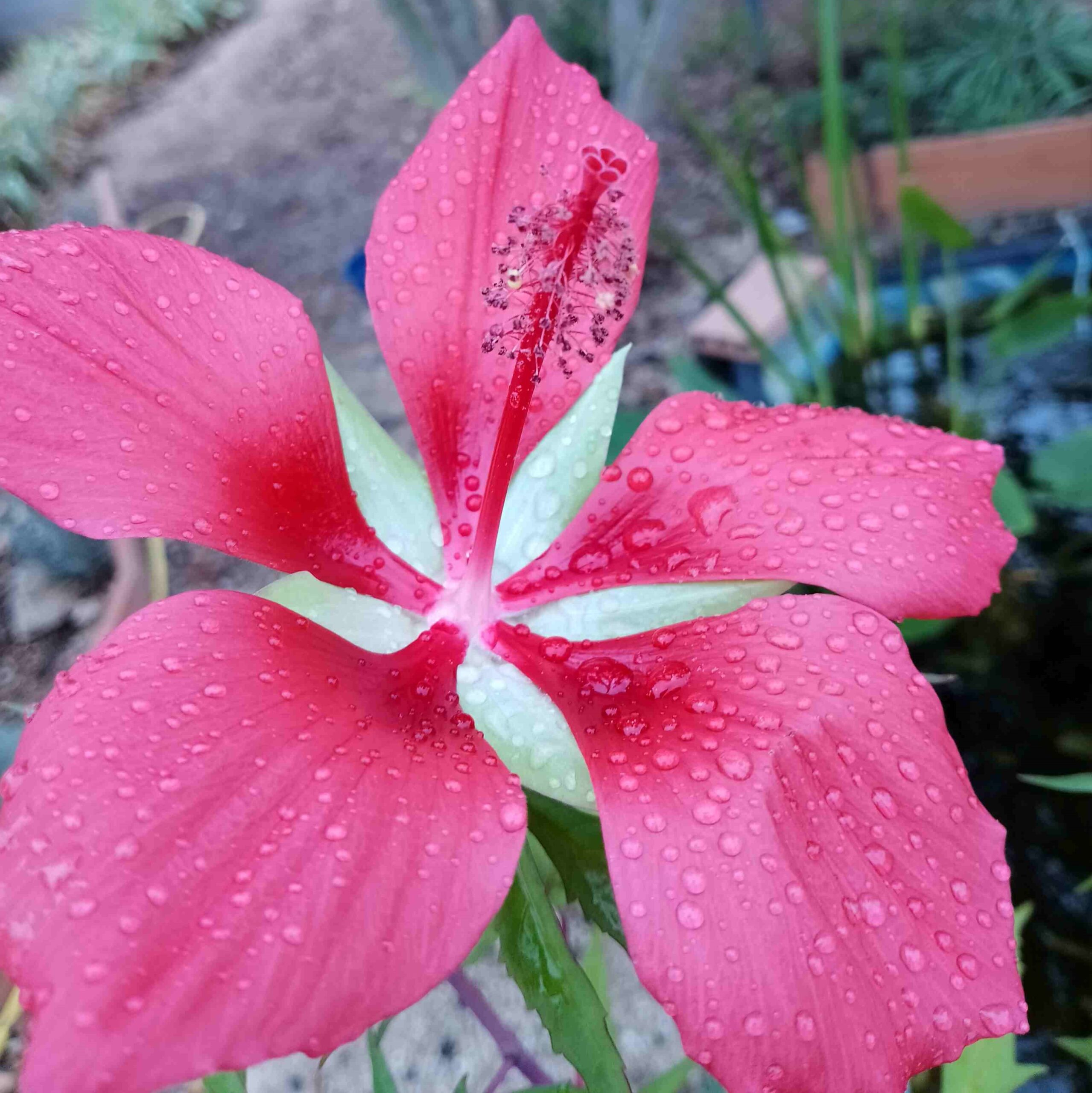 La Hibiscus Coccineus es una planta que se puede planta en poca profundidad o incluso fuera del estanque manteniendo la tierra mojada siempre. Puede alcanzar unos 2 metros de altura y prefiere un lugar soleado. Tiene unas hojas similares a la planta Cannabis Sativa. La planta está también conocida como Texas Star (estrella de Texas) por sus flores rojas de 5 pétalos que miden unos 20 cms!